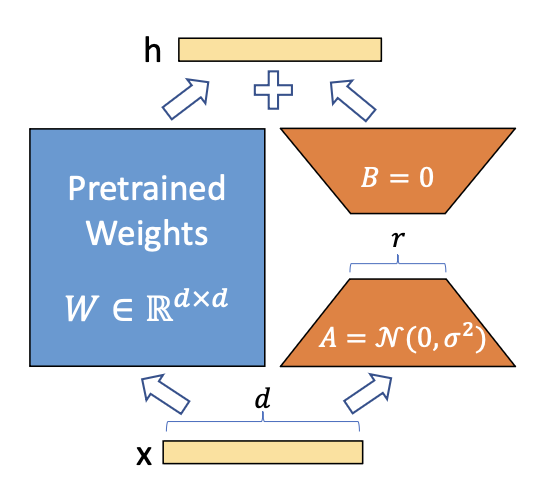 LoRA는 사전학습된 모델의 가중치를 고정(freeze) 한 채,