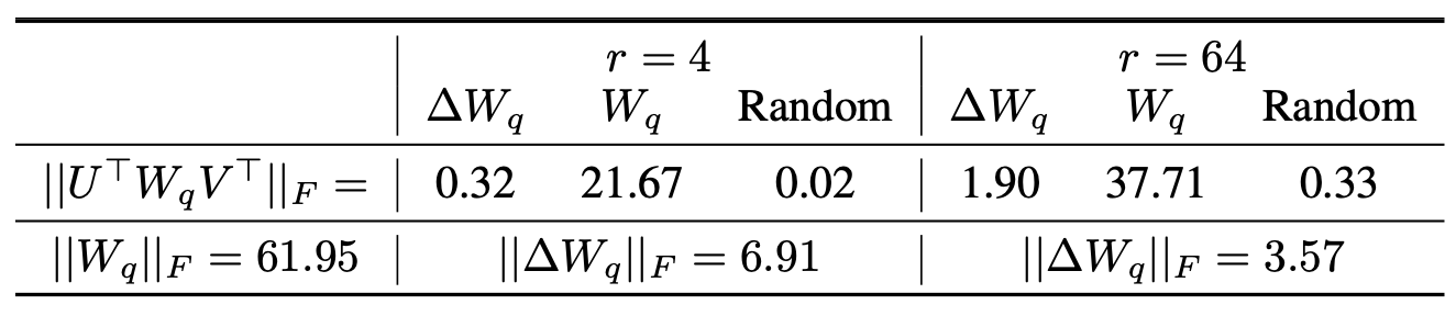 내재적 랭크(intrinsic rank) 가 낮다는 점을 다시 한 번 입증한다.