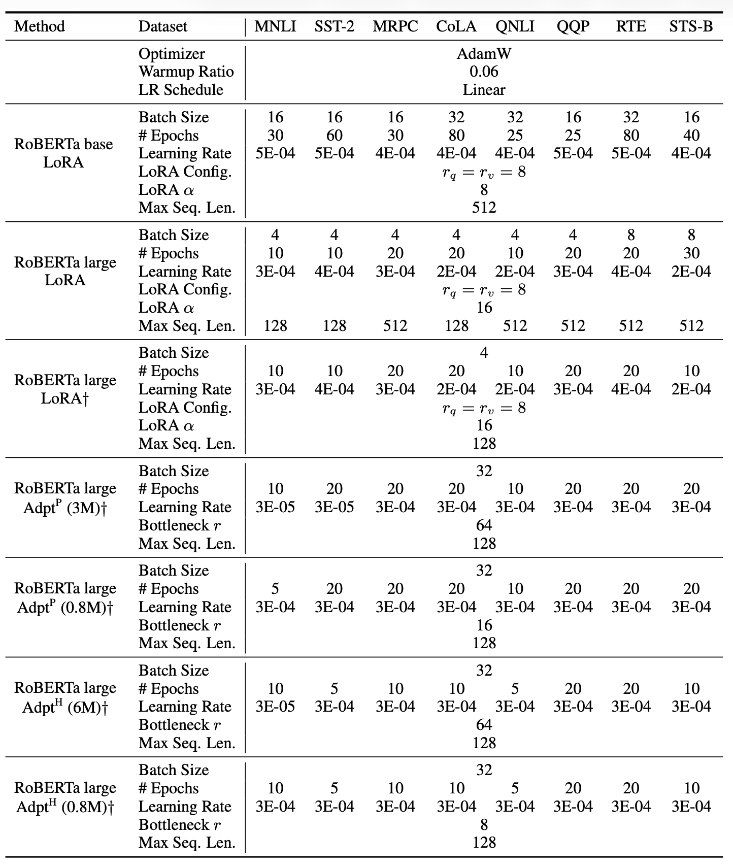 GLUE 실험, 그리고 어댑터 지연(adapter latency) 에 대한