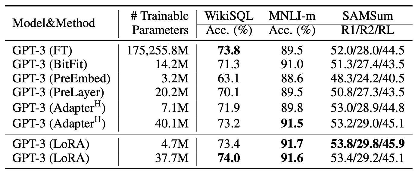 GPT-3 175B와 유사한 내재적 적응 랭크(intrinsic rank for adaptation) 를