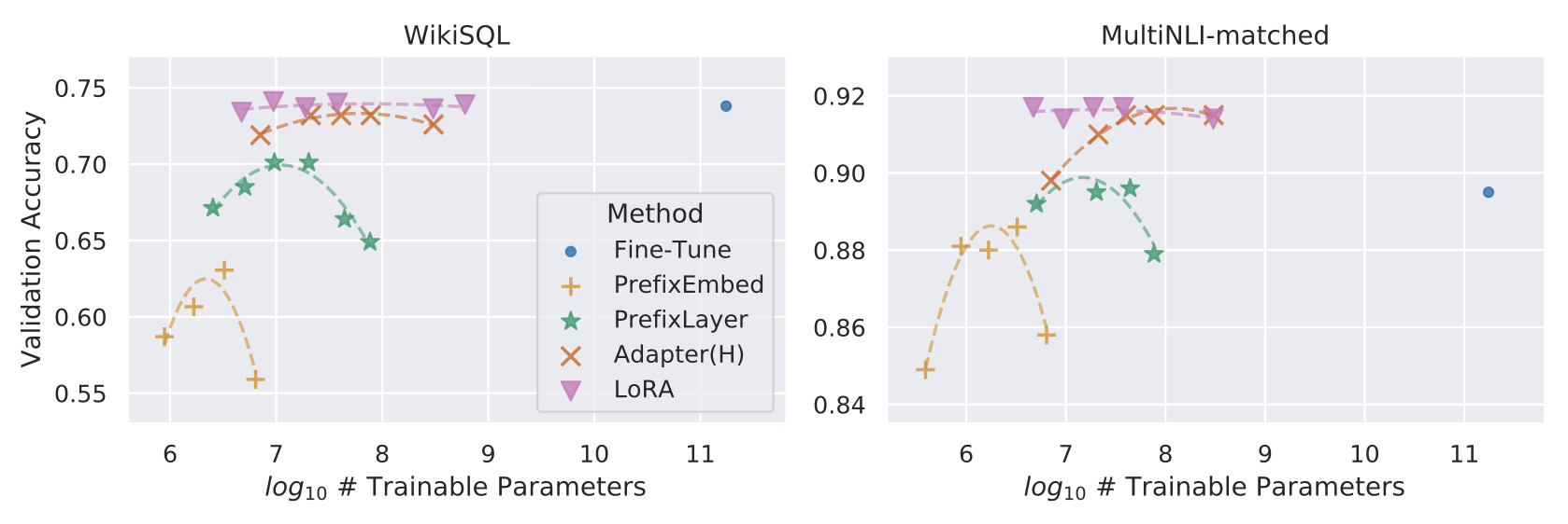 적은 추가 파라미터(parameter-efficient) 만 학습할 수 있다는 장점이 있다.