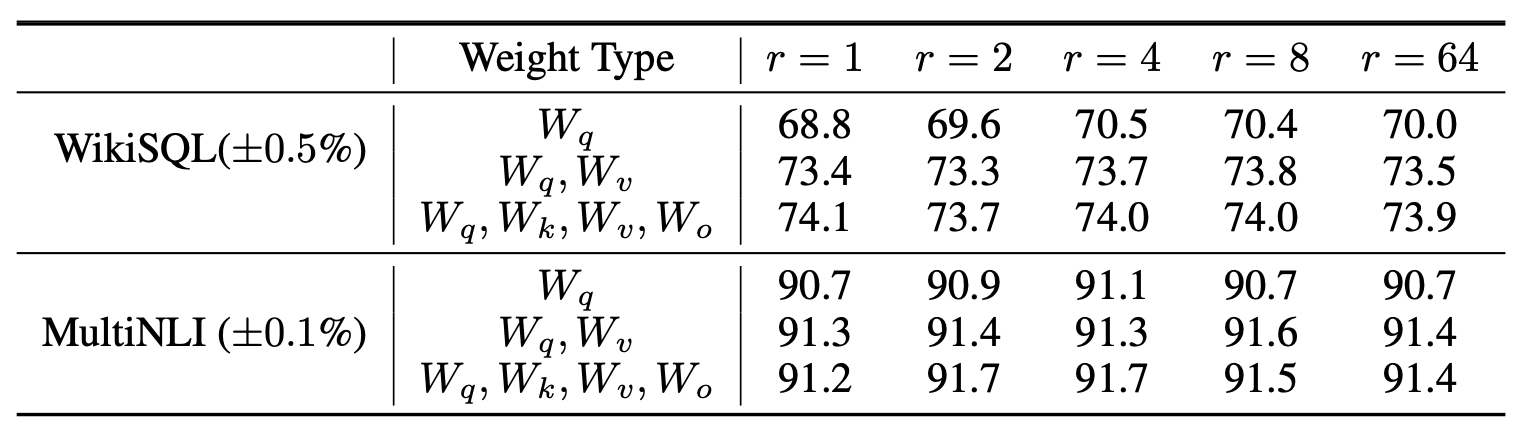 LoRA의 효율성에 대한 통찰(insight) 을 제시한다.