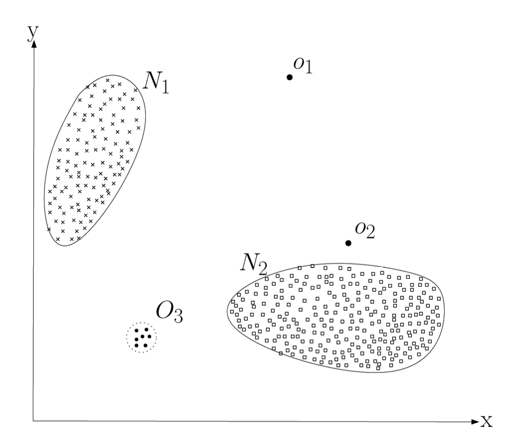 그림 1은 간단한 2차원 데이터셋에서의 이상을 보여준다.