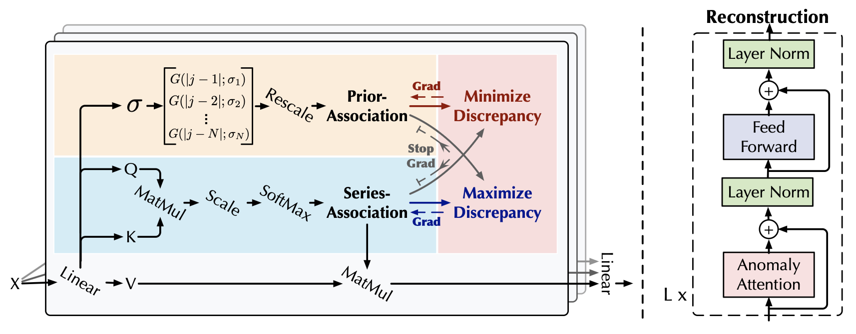 새로운 Anomaly-Attention 메커니즘을 갖춘 Anomaly Transformer를 제안한다.