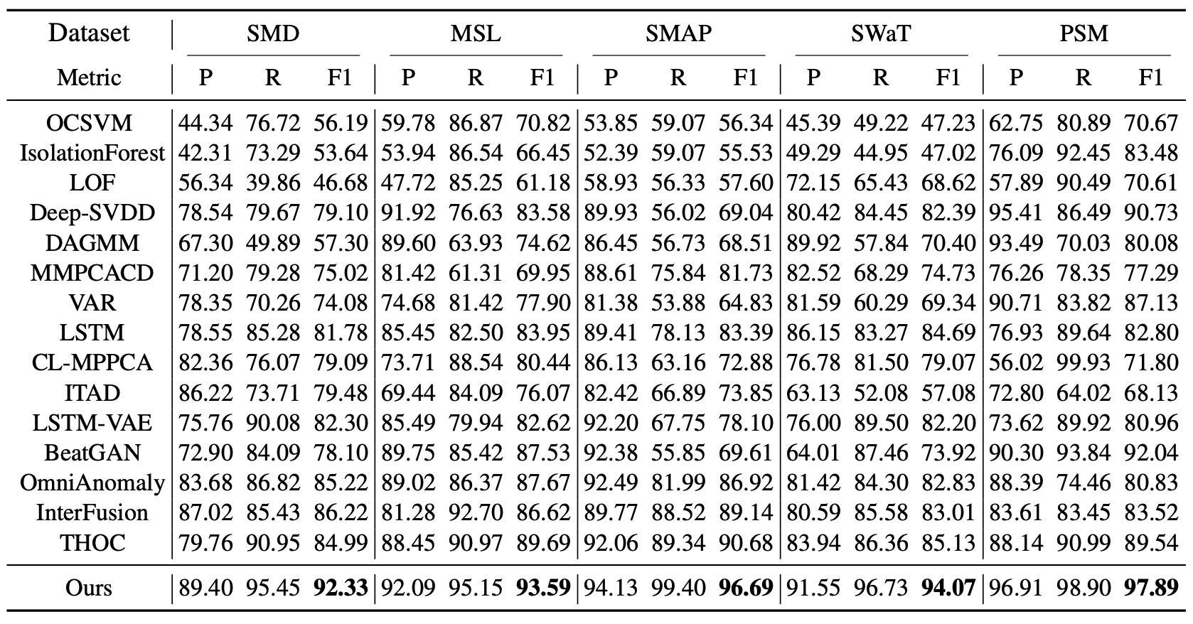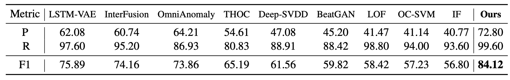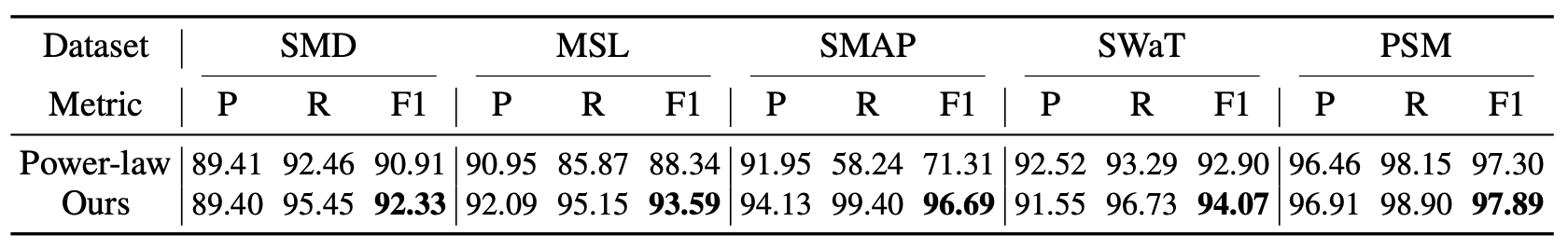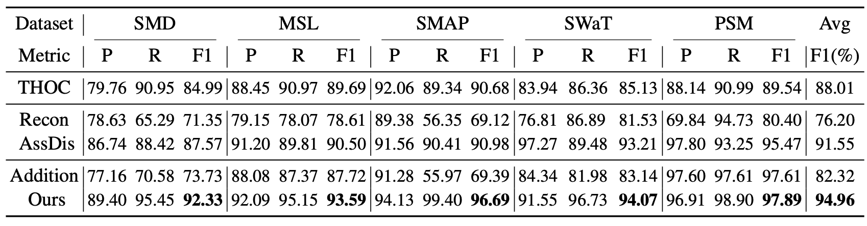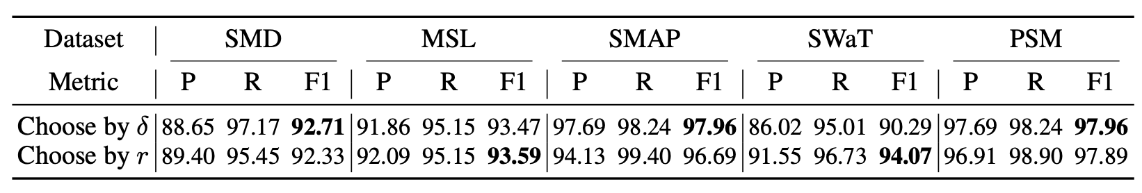 그럼에도 불구하고, Anomaly Transformer 는 여전히 가장 우수한 성능을 달성하였다.