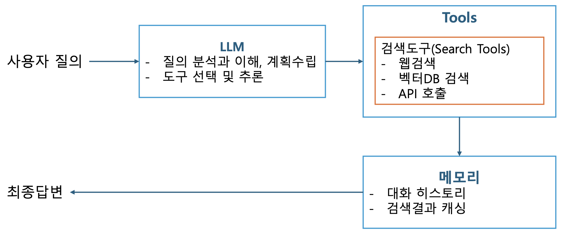 실무 환경에서 Multi-Hop 문제를 해결하는 Agentic RAG 시스템은 다음 세 가지 구성 요소를 핵심적으로 결합