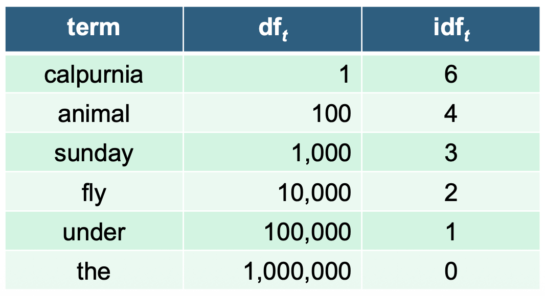 - 문서 d에 t가 나타나는 횟수: $tf_{t,d}$