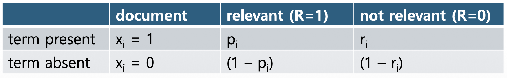 - 쿼리와 문서는 vocabulary 크기 N의 0/1 벡터로 표현된다.