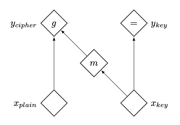 그림 1: 확률 모델의 계산 그래프. 다음의 공식들을 사용한다.