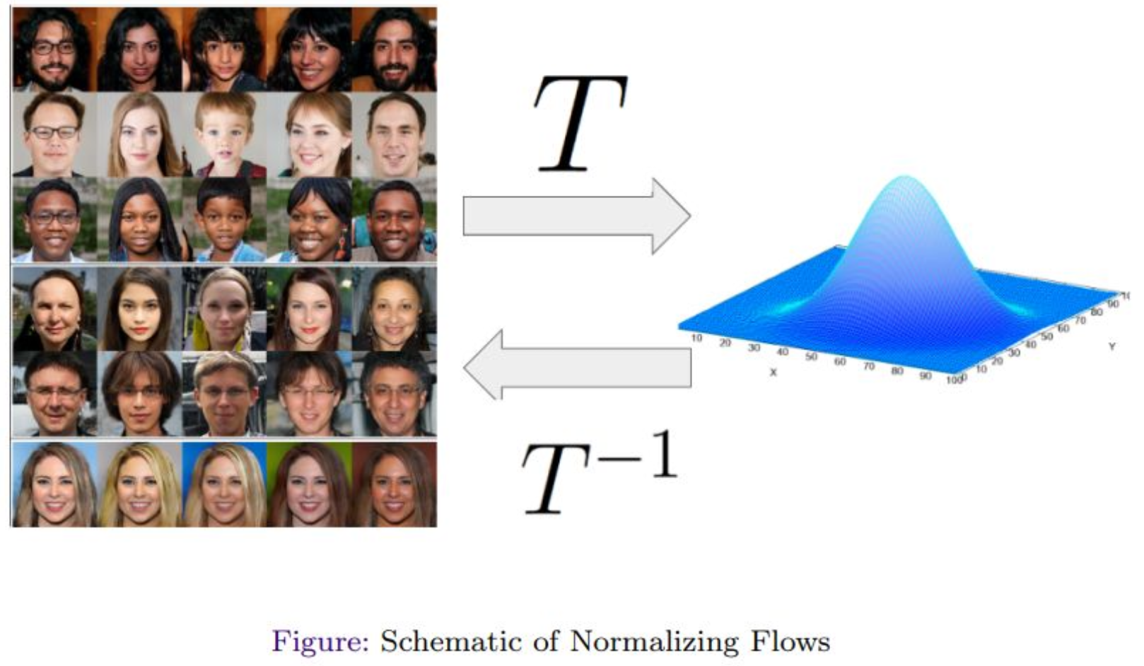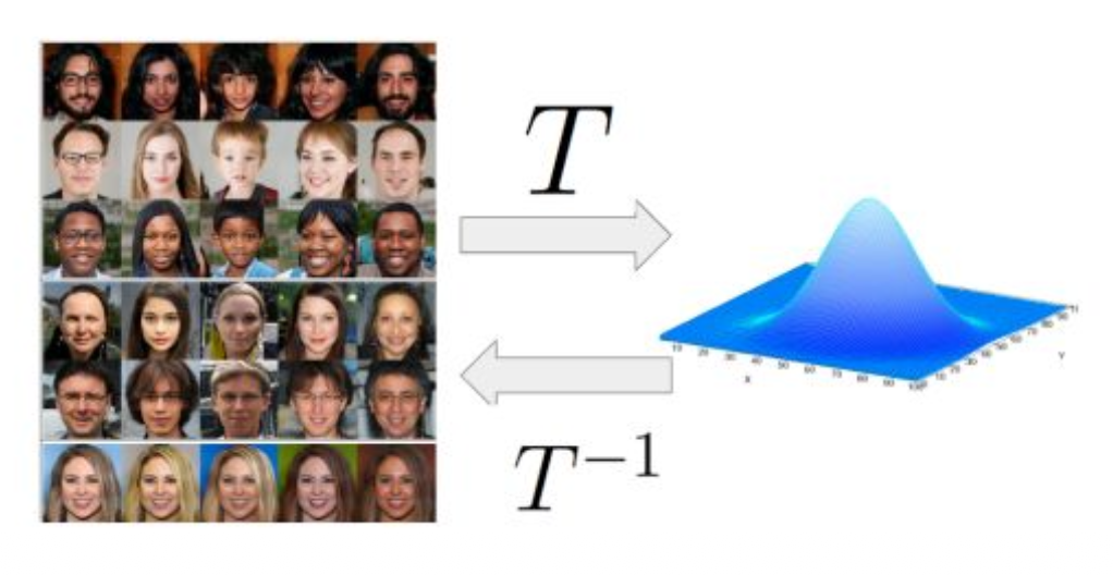 가우시안 디스트리뷰션으로 가는 어떤 맵핑 $T$가 존재한다.