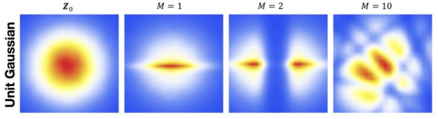 Normalizing Flow는 그 단계를 여러 단계로 구성합니다.즉, 뉴럴 네트워크에서 여러 번 feed-forward를 하면서