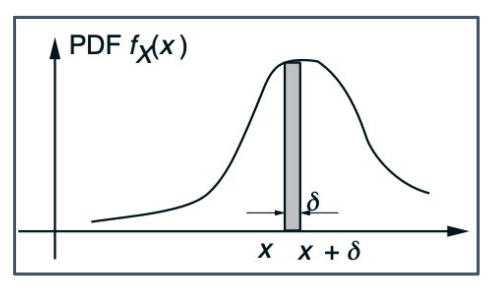 - $\delta$가 매우 작을 때, $P((x,[x+\delta]) \approx f_X(x) \cdot \delta$이다.