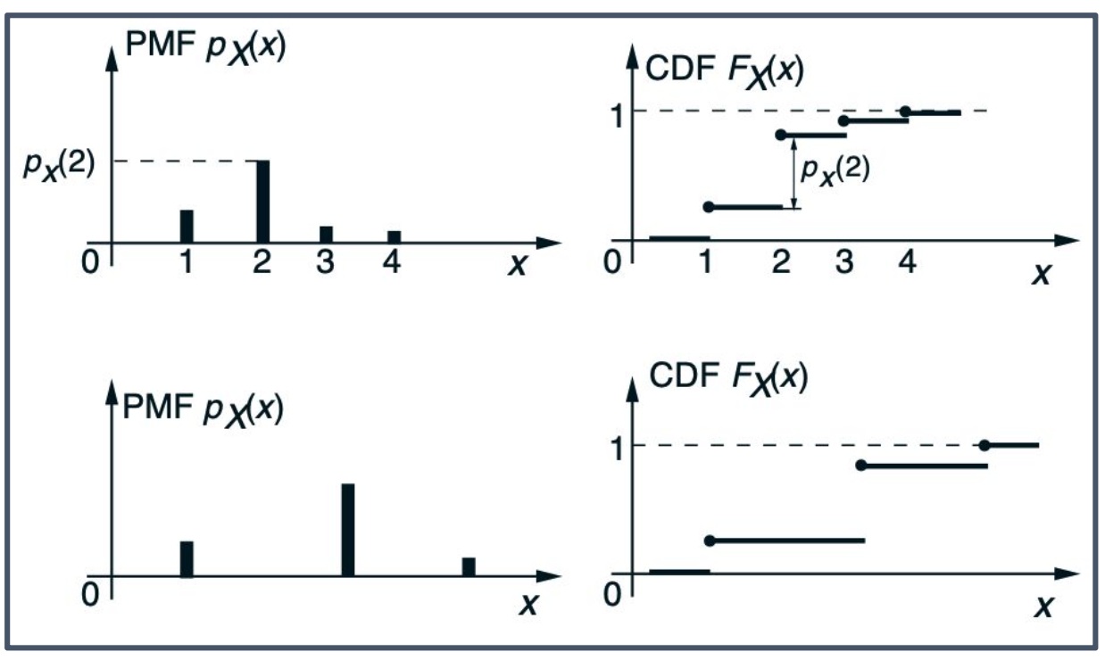 - 확률질량함수(PMF) $p_X(x)=P(X=x)$ 로 표현된다.