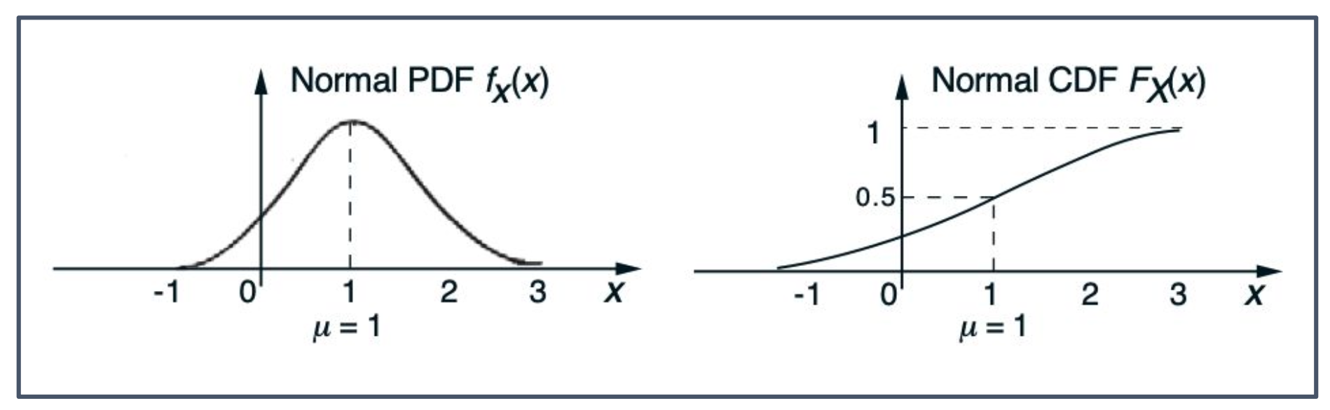 - 확률밀도함수(PDF) $f_X(x)$ 로 표현되고
