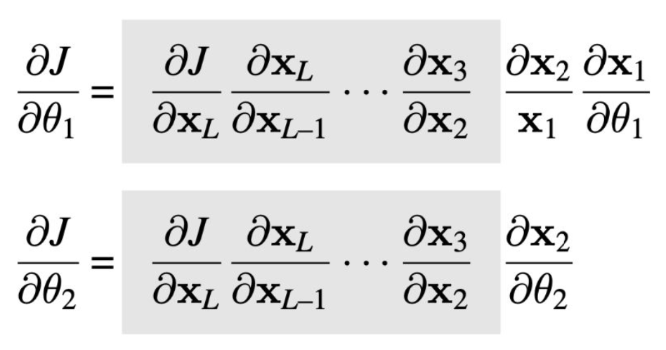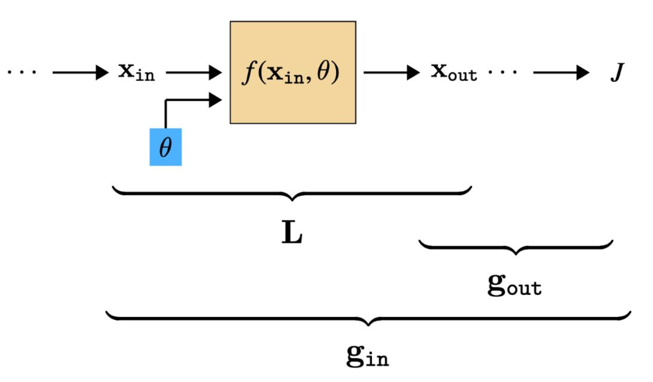 - 각 레이어는 $\theta_1, \theta_2, \dots, \theta_6$ 등 파라미터 집합을 가진다.