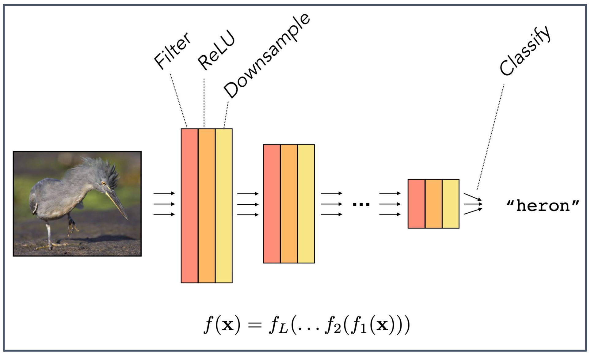 \[f(\mathbf{x}) = f_L(\dots f_2(f_1(\mathbf{x})))\]