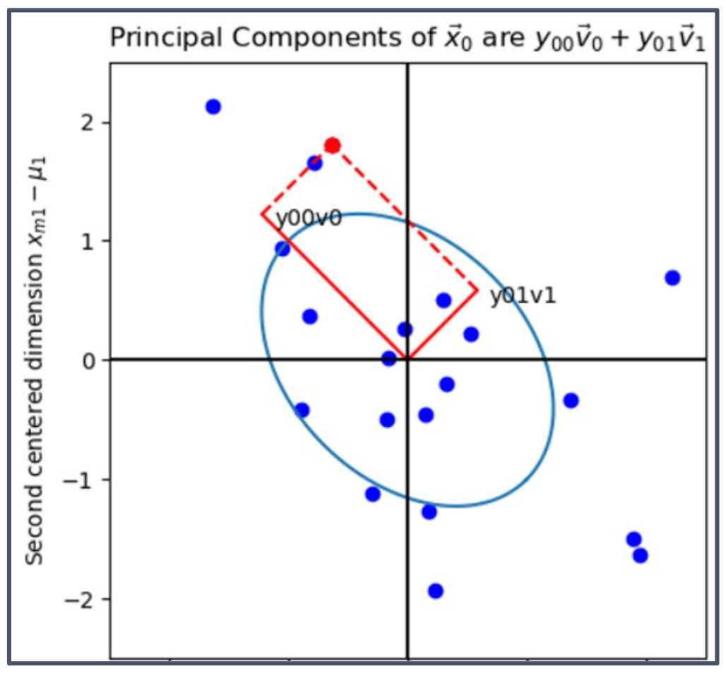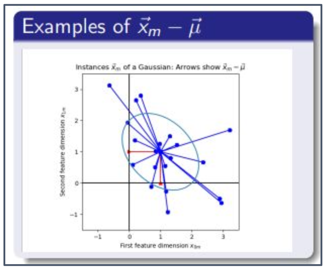 - 각 화살표는 $\vec{x}_m - \vec{\mu}$ 로, 표본과 평균 벡터 사이의 차이 벡터를 의미한다.