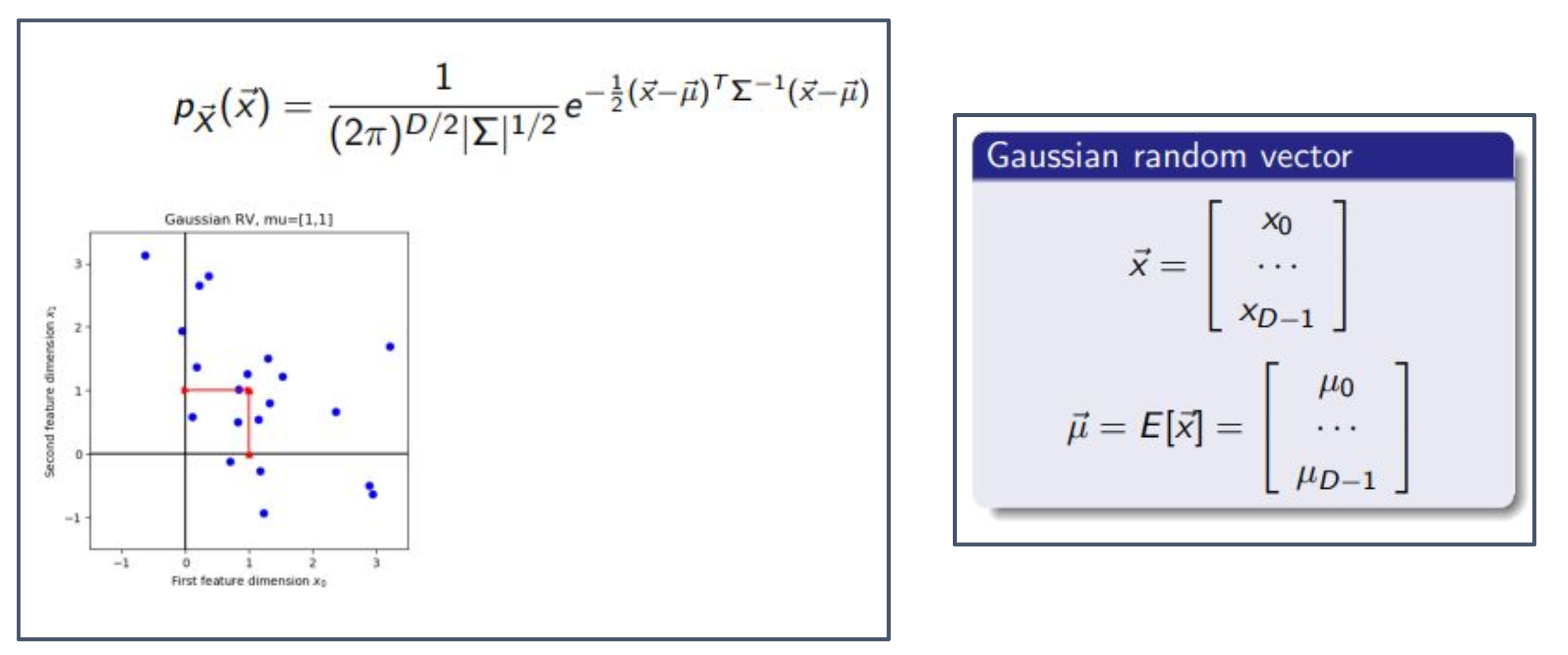 - $\vec{x}$ 는 $D$차원의 확률변수이며, 각 성분은 $x_0, x_1, \dots, x_{D-1}$ 로 구성된다.