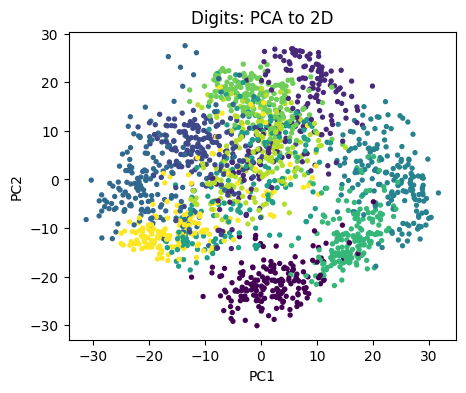 # 8️⃣ 2D 산점도 (PCA 투영 결과)