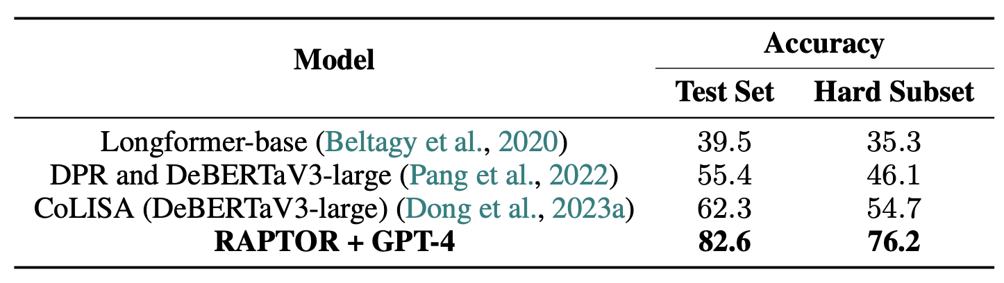 예를 들어 RAPTOR 검색을 GPT-4의 사용과 결합함으로써,