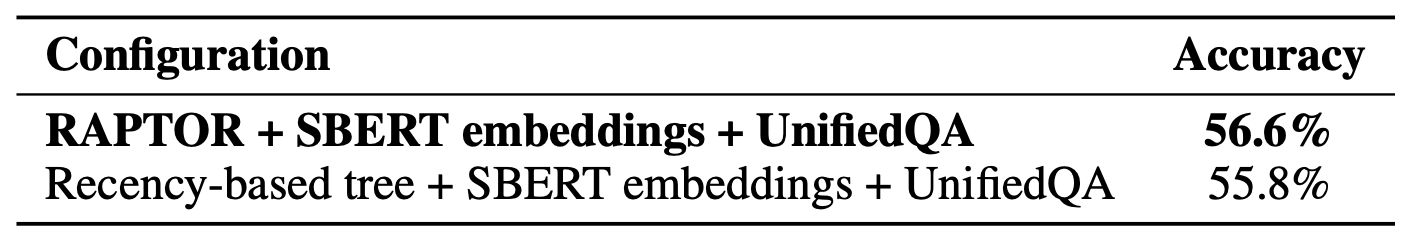 RAPTOR의 다중 레이어 트리 구조의 중요성을 드러낸다.