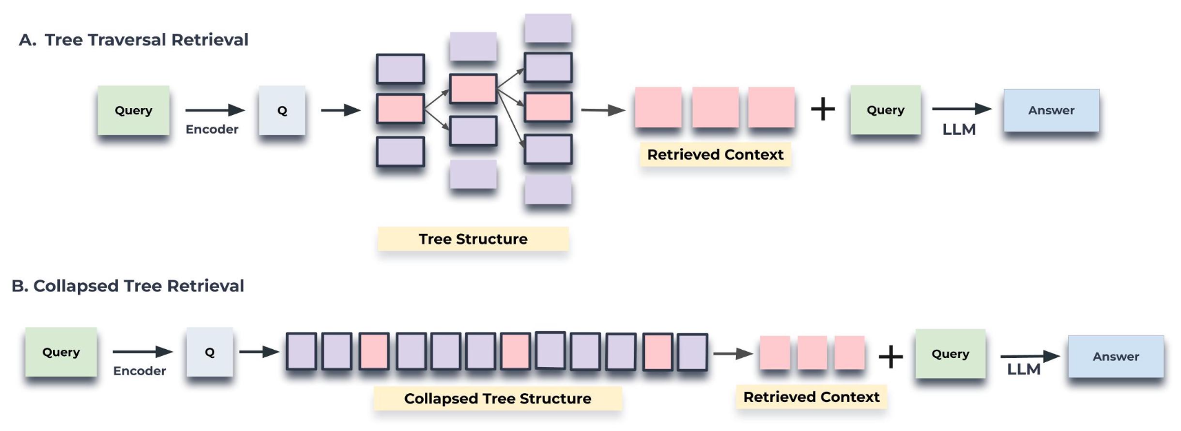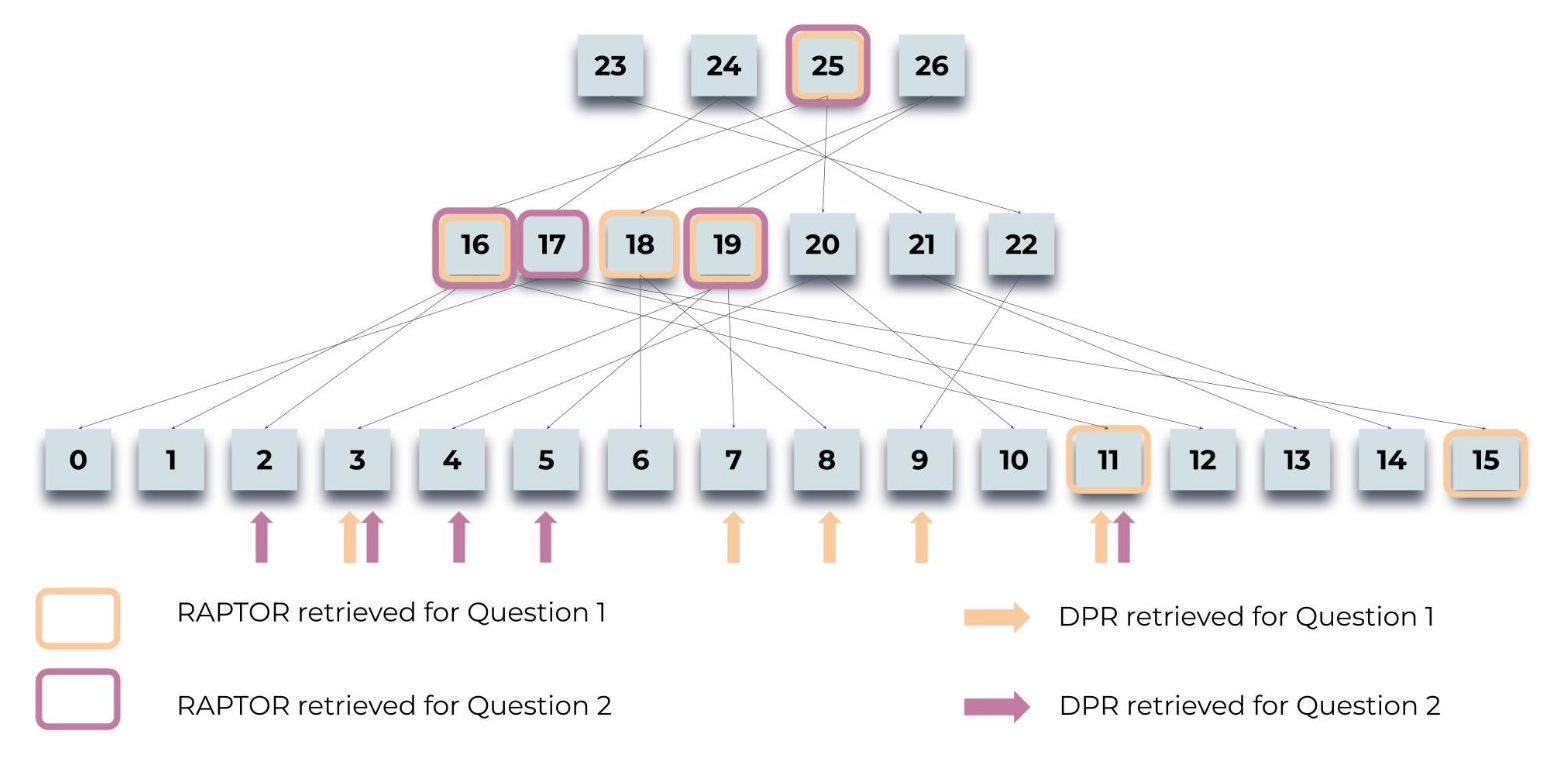 우리의 RAPTOR 모은 이 트리로부터 정보를 검색하며,