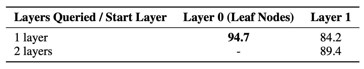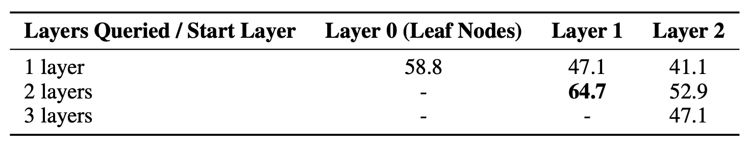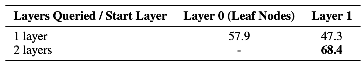 RAPTOR의 다층 구조가 가지는 유용성을 검증한다.