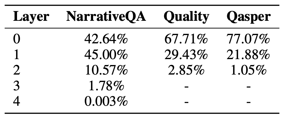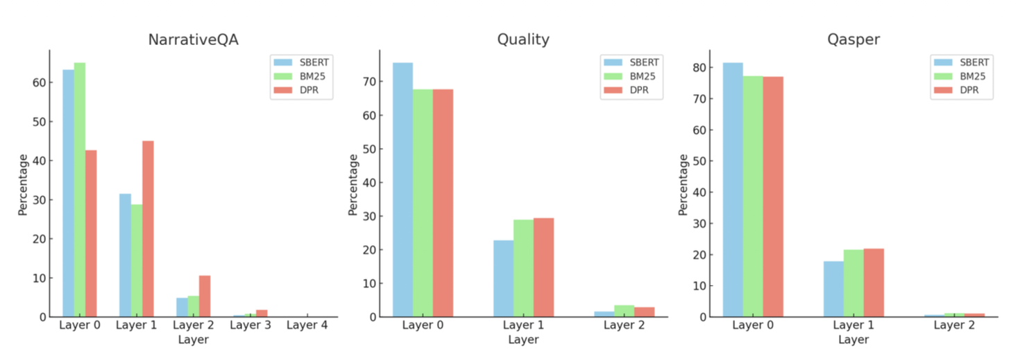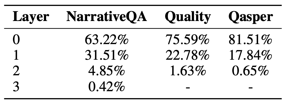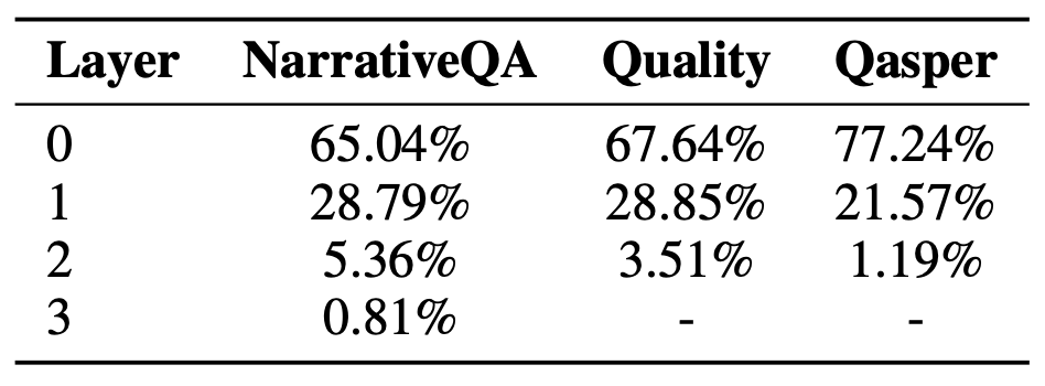I RAPTOR 성능에 대한 서로 다른 레이어들의 분석