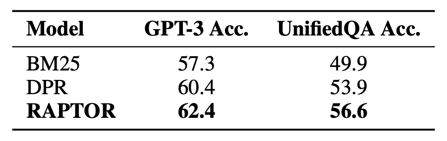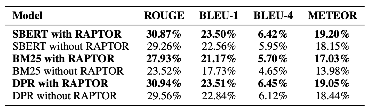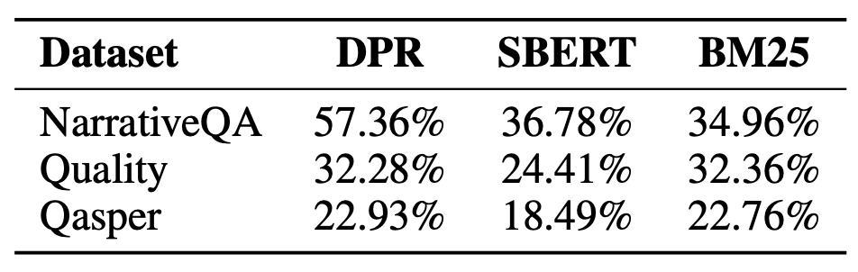특히, NarrativeQA 데이터셋에 대해 DPR 검색기를 사용하는 RAPTOR가