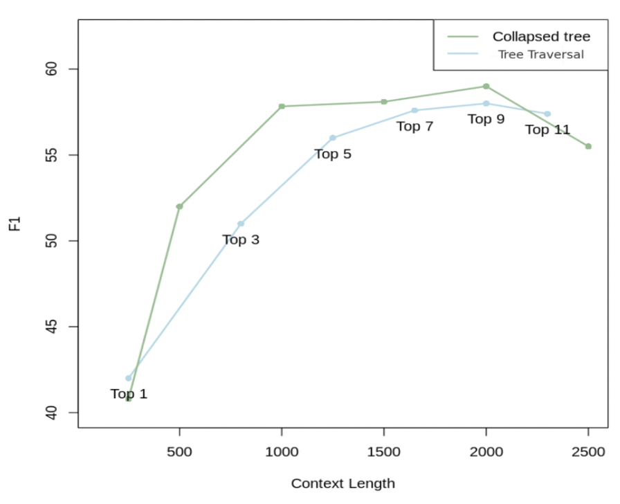 collapsed tree 검색을 사용하는 RAPTOR를 대상으로