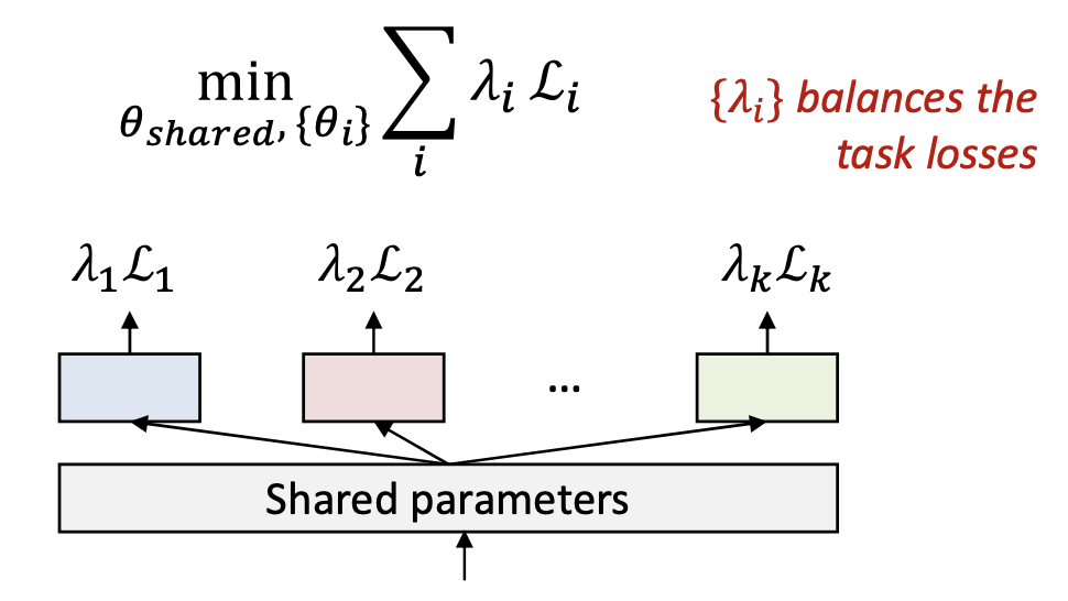 - 과제들은 일부 파라미터 $ \theta_{shared} $ 를 공유한다.