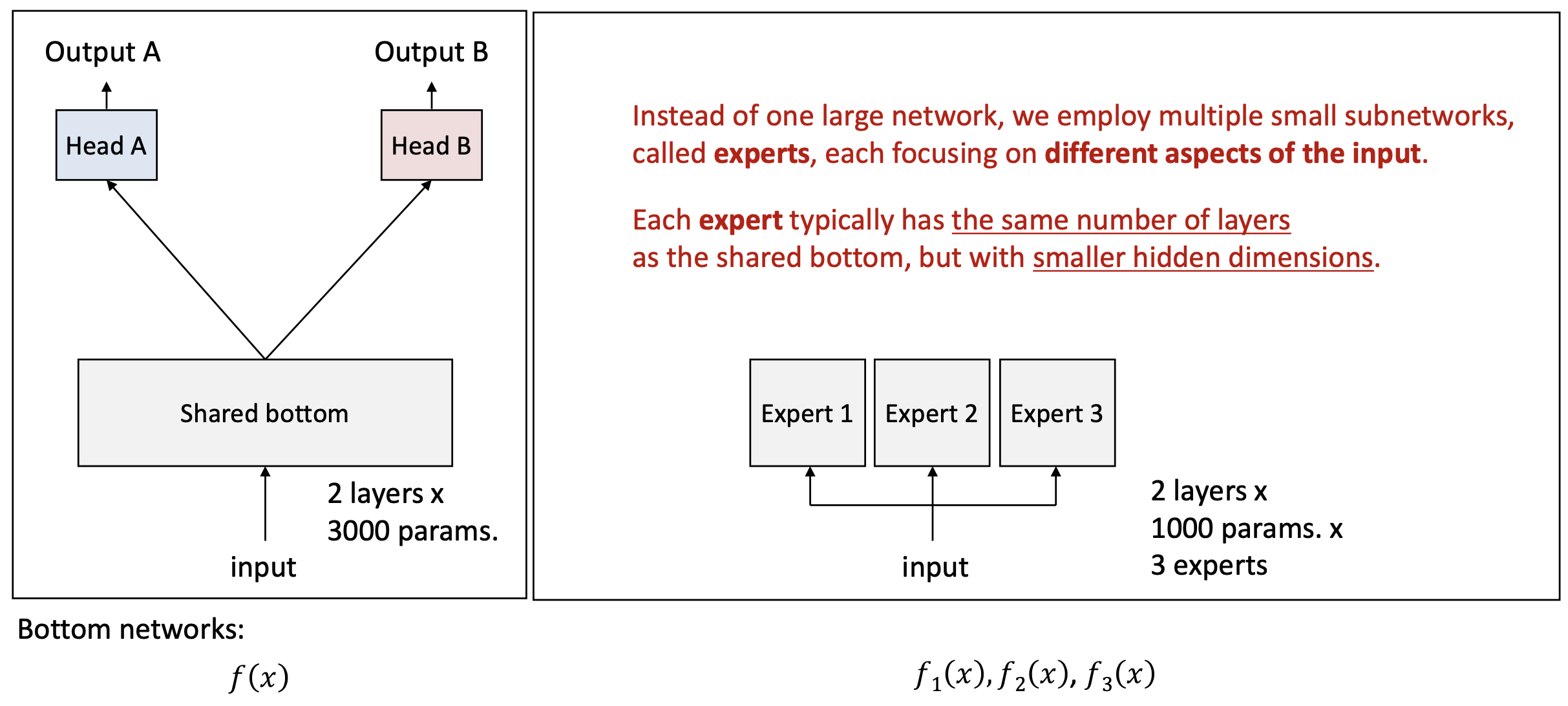 각 전문가는 입력의 서로 다른 측면(different aspects of the input) 에 집중한다.각 전문가는 일반적으로