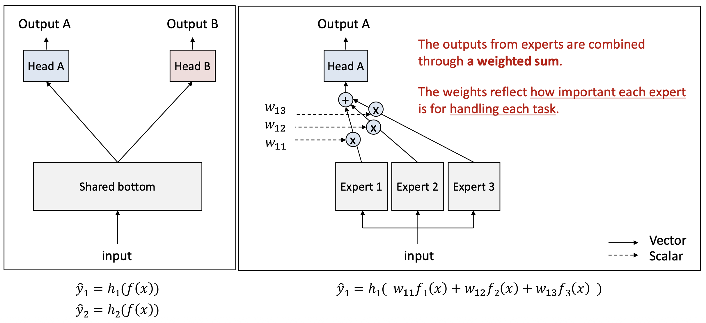 - 최적화(Optimization) 는 공유 하단(shared bottom) 과 정확히 동일한 손실(loss) 을 사용하여 수행된다.