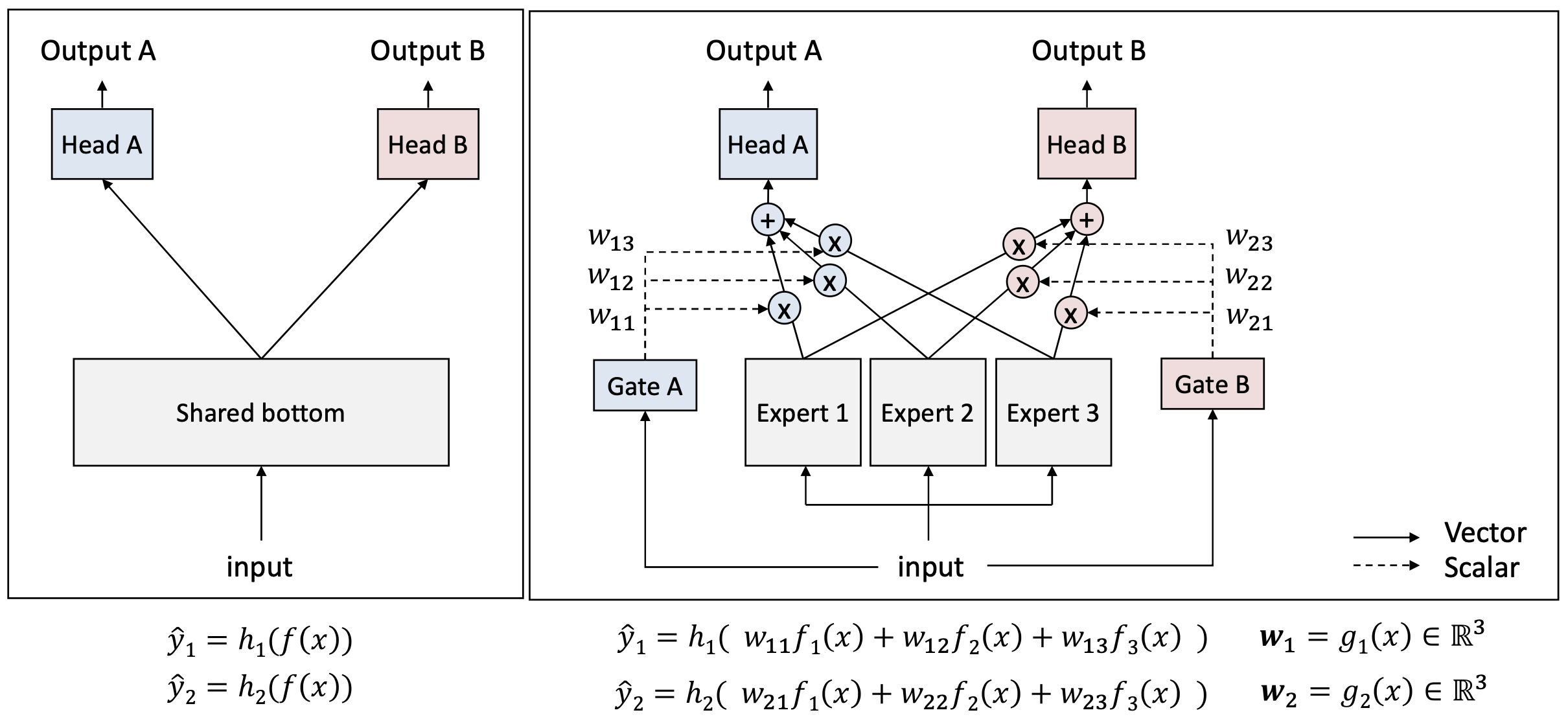 - MMoE의 순전파(forward propagation) (K개의 과제에 대해)