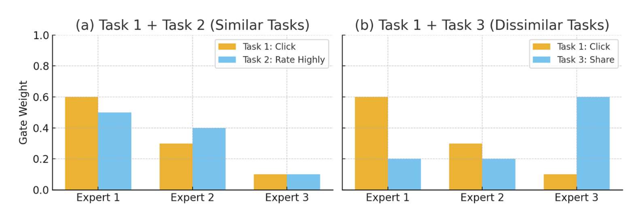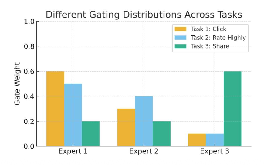 - 과제별 게이트(task-specific gates)는 각 과제가 공유된 전문가(shared experts)를