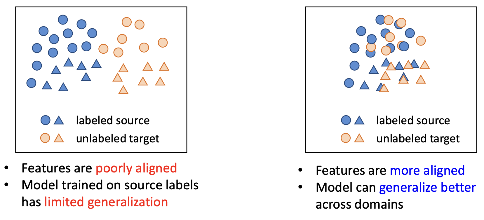 - 다시 말해, 두 도메인의 특성 공간(feature spaces) 은 잘 정렬되어야 한다(well aligned).