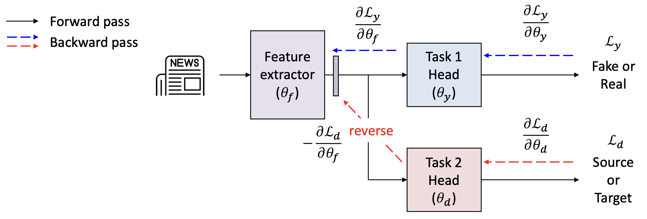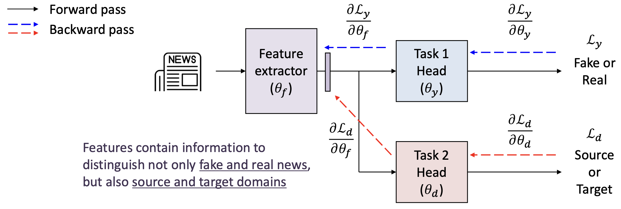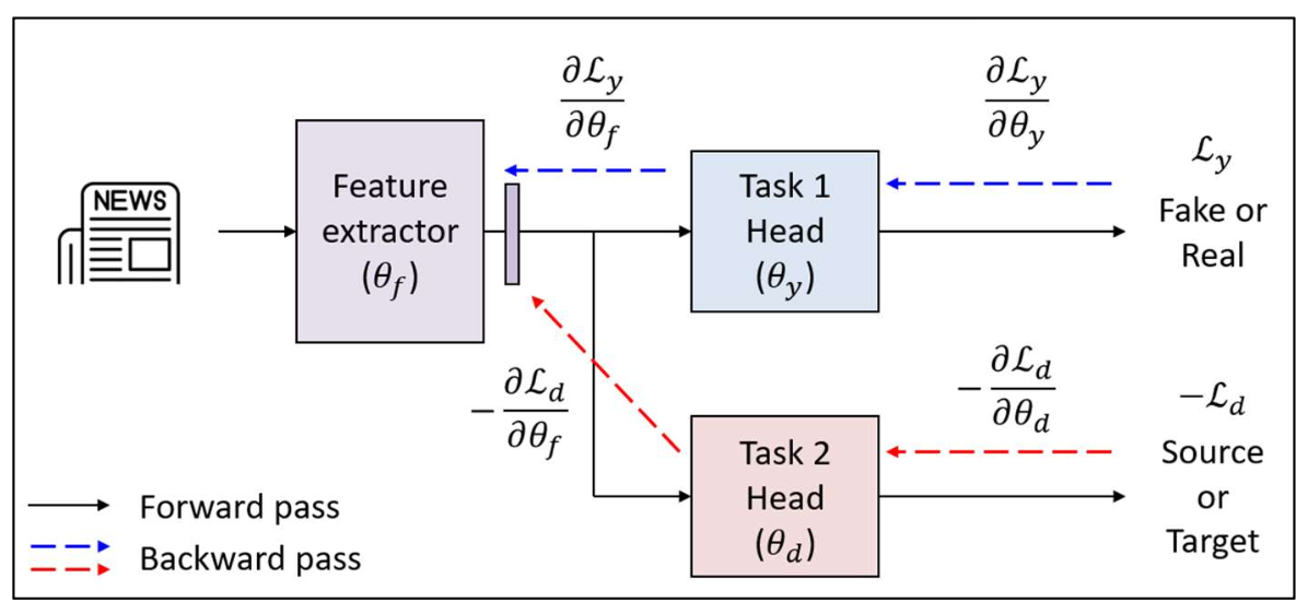 - $\mathcal{L}_y(\theta_f, \theta_y)$ 와 $\mathcal{L}_d(\theta_f, \theta_d)$ 를 계산한다.