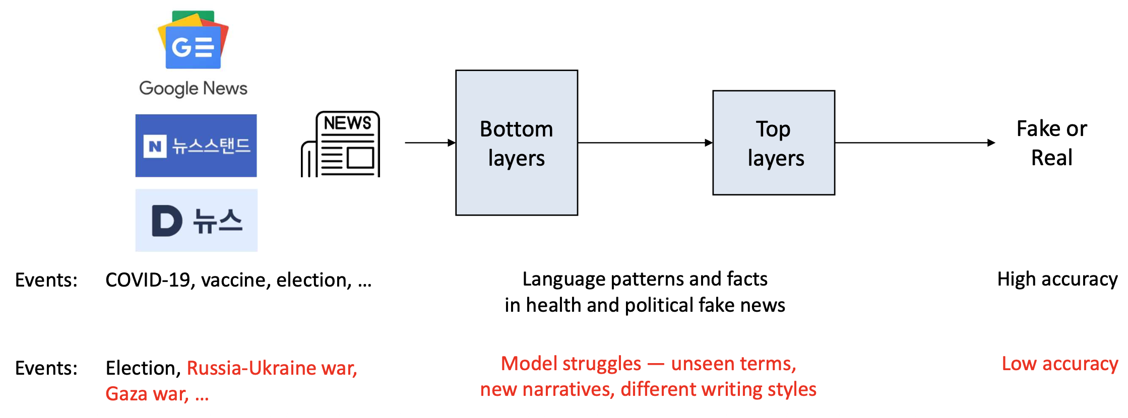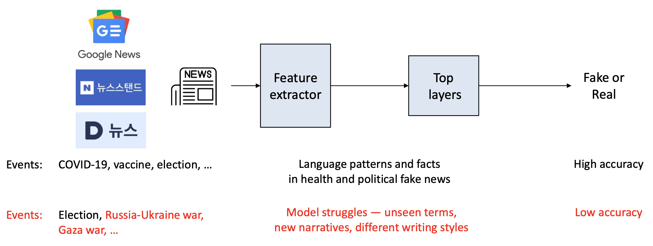 이 문제는 모든 새로운 뉴스 데이터(new news data) 에 대해 레이블(labels) 이 있다면 해결될 수 있지만,