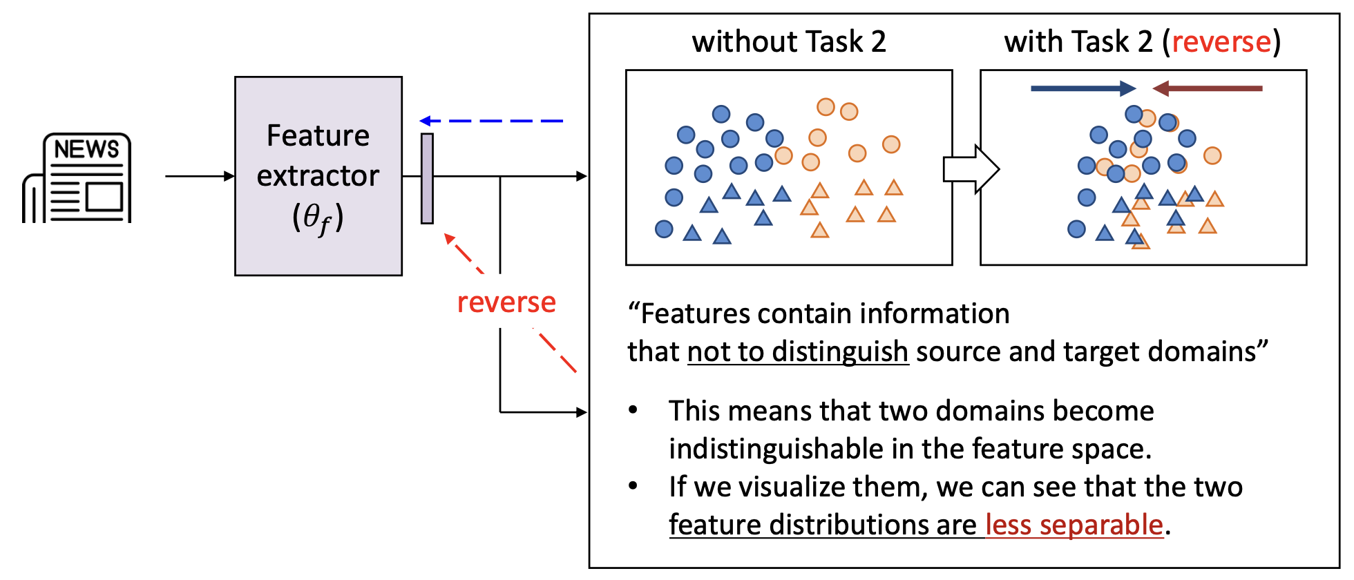 빠르게 무의미해진다(useless). - 이때 도메인 분류기는 특징 추출기에 유의미한 그래디언트를 전달하지 못한다.