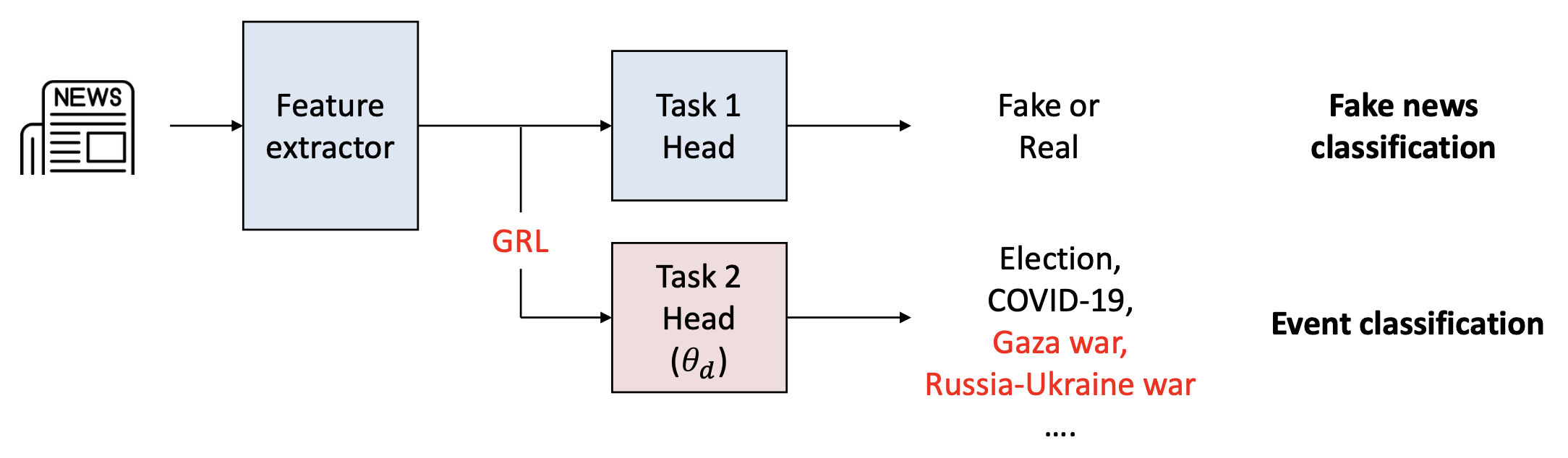 새로운 사건(new events)에 대해 가짜/진짜 레이블(fake/real labels) 은 필요하지 않다.
