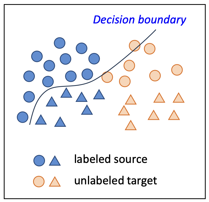 \[D_S = \lbrace (x_i^S, y_i^S) \rbrace_{i=1}^n \quad \text{from} \quad P_S(x, y)\]레이블되지 않은 타깃 도메인 (Unlabeled target domain):