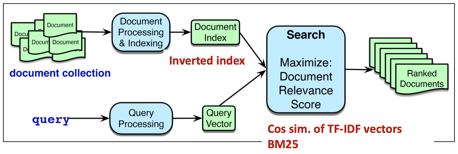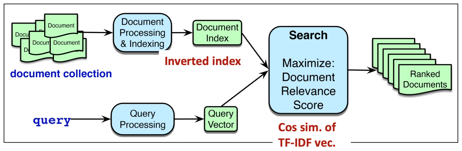시스템은 컬렉션(collection)에서 순위가 매겨진 문서 목록(ranked list of documents) 을 반환한다.Document: 웹페이지, 논문, 문단 등 어떠한 텍스트 단위도 문서(document)가 될 수 있다.