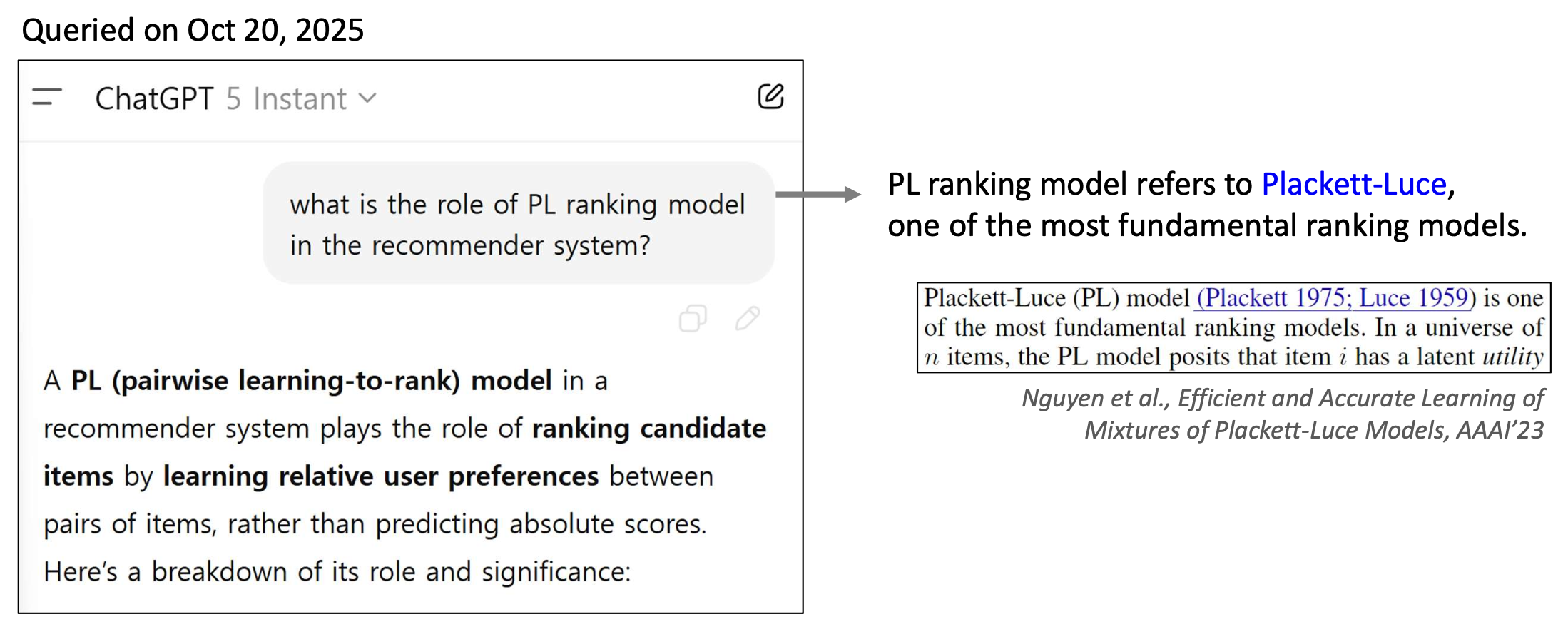 예시 질문 “추천에서 PL ranking model이 무엇인가?”가 들어오면,