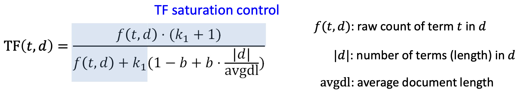 BM25에서 용어 빈도(TF)는 다음과 같다: