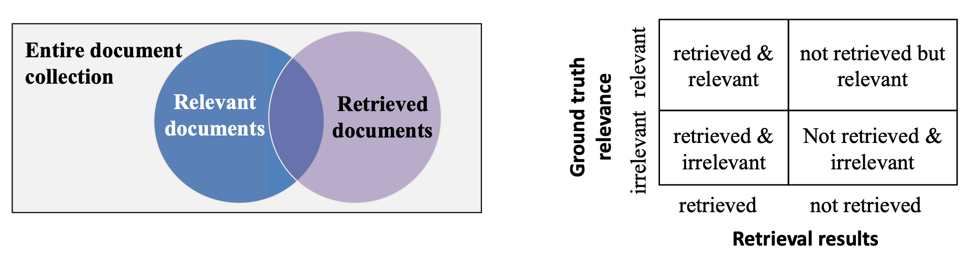 - Relevance score: 사용자의 정보 요구를 충족하는지 여부에 대해 각 문서에 부여되는 점수이다.