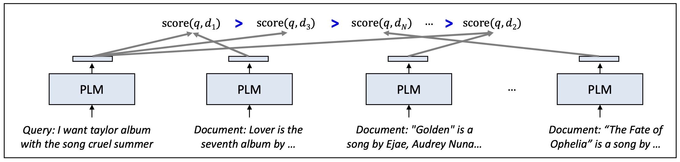 - 모든 후보 문서들에 대한 상대적 순위(relative ranking) 를