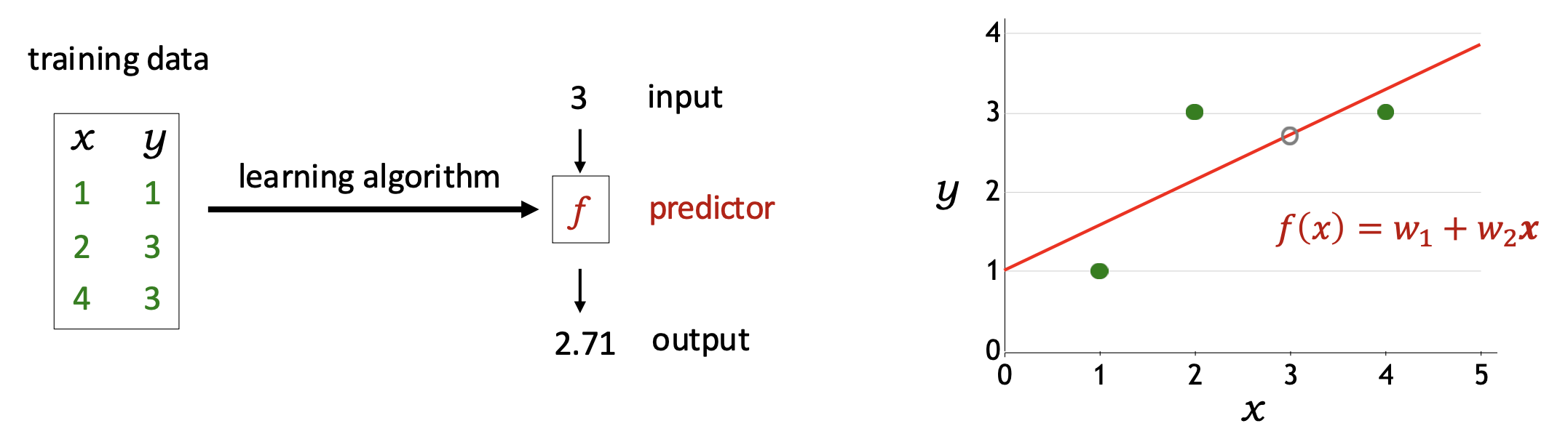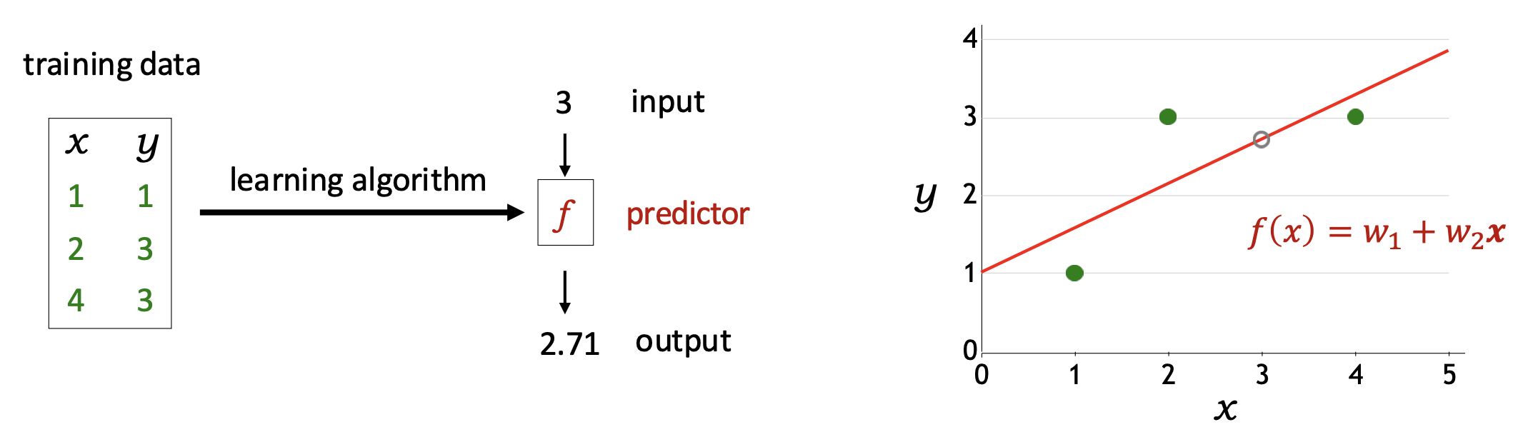 - 회귀(Regression): 입력이 주어졌을 때 연속적인 출력값을 예측하는 것