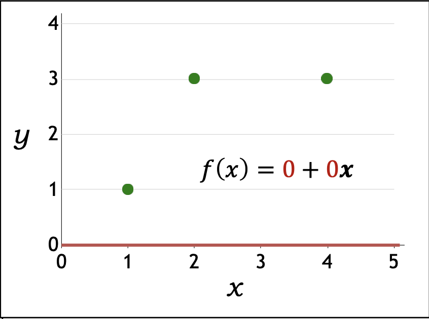 \[D_{train} = \{(1,1), (2,3), (4,3)\}\]초기화: