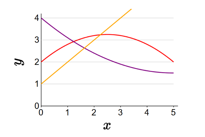 \(f(x) = [4, -1, 0.1] \cdot [1, x, x^2] = 4 - x + 0.1x^2\)세 번째 경우: