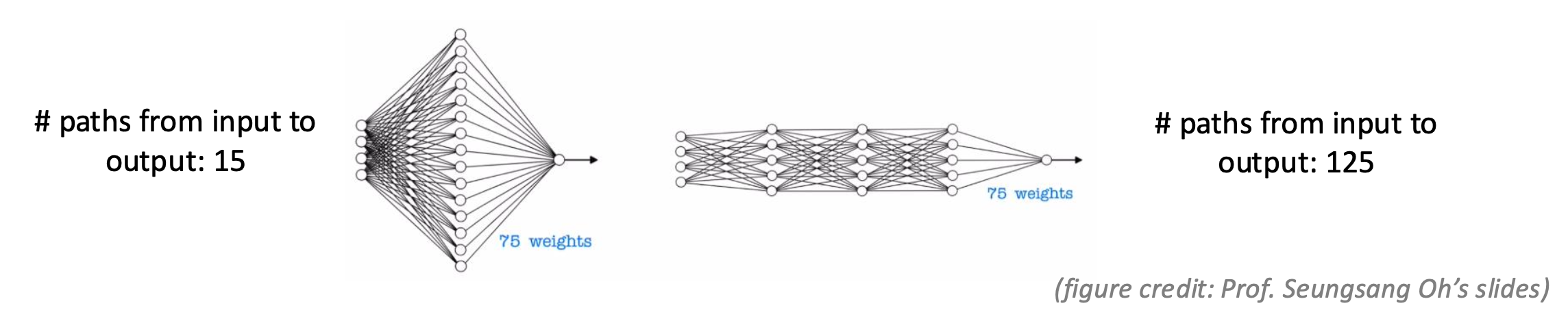 - 반면 신경망은 여러 개의 은닉층을 거치며 각 층에서 새로운 표현을 만든다.
